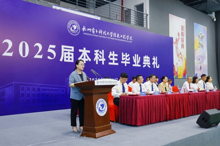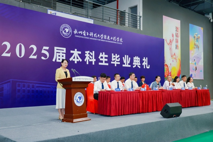 教师代表张海平老师向全体毕业生表达了热烈的祝贺,并深情寄语大家坚守踏入信息工程领域的初心,在未来的广阔天地中持续学习、迭代更新、勇敢担当,如同精心编写的代码稳健运行于社会,创造价值,成就自我。