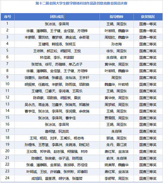 11月22-24日,第十二届全国大学生数字媒体科技作品及创意竞赛全国现场总决赛暨第四届“智能+”时代背景下智能科技与数字创意人才高质量培养创新论坛在成都科幻馆、成都工业学院举办。经过激烈角逐,我院学子获得3个国赛一等奖、6个国赛二等奖、15个国赛三等奖,取得了优异的成绩。