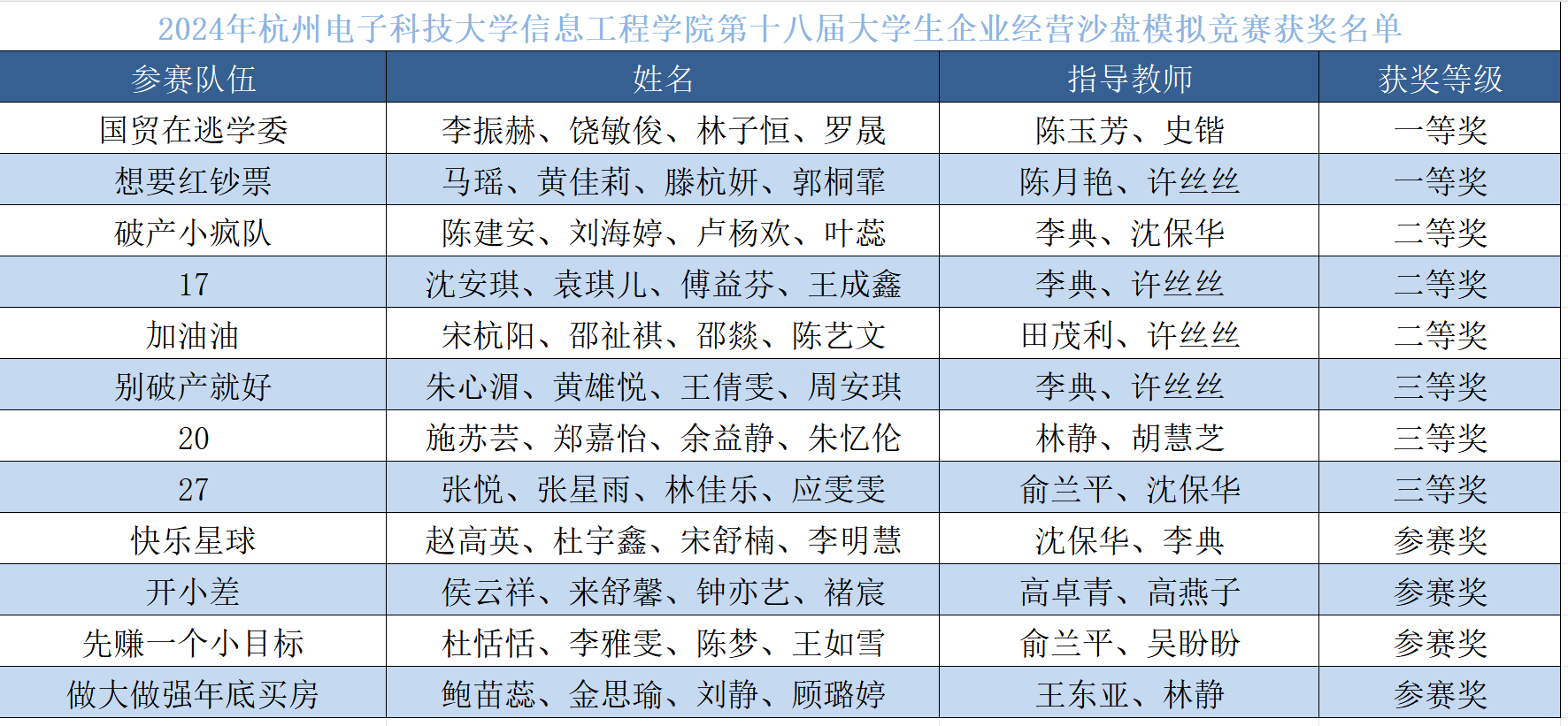 2024年9月20日至9月22日,由点点taptap低频彩举办的第十八届大学生企业经营沙盘模拟竞赛校赛(包含下沙校区和青山湖校区)圆满结束!经过经过三天的激烈角逐,我院学子荣获一等奖2项,二等奖3项,三等奖3项,参赛奖4项。