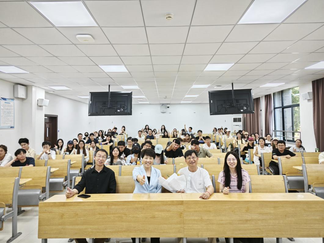 学院领导来到三位教师职业生涯的“最后一堂课”,向教师们献上花束,致以最诚挚的感谢与衷心的祝福。陈月艳深情回顾了钱锋、李道国和赵红莉老师的从教经历,对他们的付出表示感谢,也欢迎三位教师能在退休之后常回“家”看看。