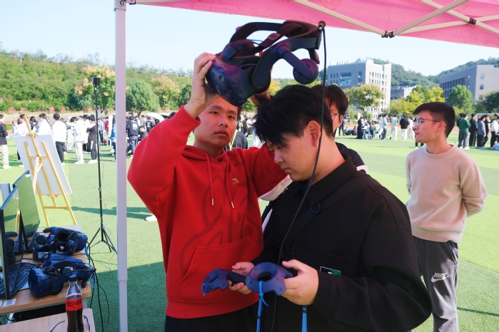 活动围绕清廉主题展开,将廉洁文化和趣味体育紧密结合,共设“清风送廉”“清心自守”“绿茵廉行”“廉境虚游”“蒙眼寻廉”“接力扬廉”“廉韵拼图”七个趣味项目。通过精心设计的项目,寓教于乐,将廉洁理念巧妙融入到互动中,深受现场师生的喜爱。其中,“廉境虚游”项目结合了计算机专业的特色,参与者通过佩戴VR设备,置身廉洁文化虚拟展厅,在虚拟场景中感受廉洁文化力量。此次活动采用“体育+VR技术”的创新形式,用科技展现廉洁文化,用体育精神点燃廉洁火花,让廉洁文化“动”起来。