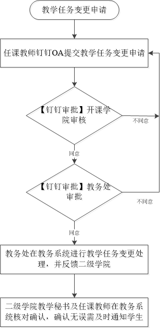 2.教务处负责在教务系统对审批通过的教学任务变更进行处理。