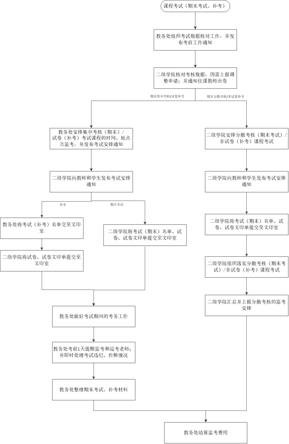 5.二级学院记录分散考核(期末)监考安排,报教务处统一结算监考费用。