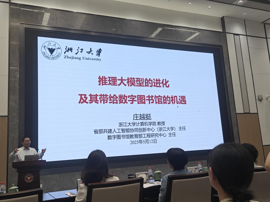 教育部人工智能协同创新中心主任庄越挺教授发表了题为《推理大模型的进化及其带给数字图书馆的机遇》的学术报告。该报告聚焦人工智能领域最前沿的推理大模型研究方向,系统梳理了从早期大语言模型到DeepSeek推理大模型的技术演进路径,特别深入分析了“推理”这一核心能力的突破性发展,及其为数字图书馆建设带来的创新机遇。