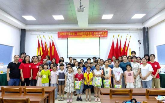 全媒体中心实践服务团:全媒体中心实践服务团于 7 月前往杭州市临安区板 桥镇开展暑期支教活动, 支教活动开设 20 余门课程 。“板桥同行筑梦路, 青春 携手创新篇 ”,我们以培养“小小梦想家 ”为中心, 内含新媒体小课堂、朗诵小 课堂、趣味天文课 、中华文化课 、国之重器等多门精品课程。在板桥镇,孩子们 在本次活动中沉浸于古今交织的文化韵味,他们的好奇心如同晨曦中的露珠,晶 莹剔透, 探索着知识的海洋, 发现着自我热爱的领域, 收获着丰富的课外智慧。