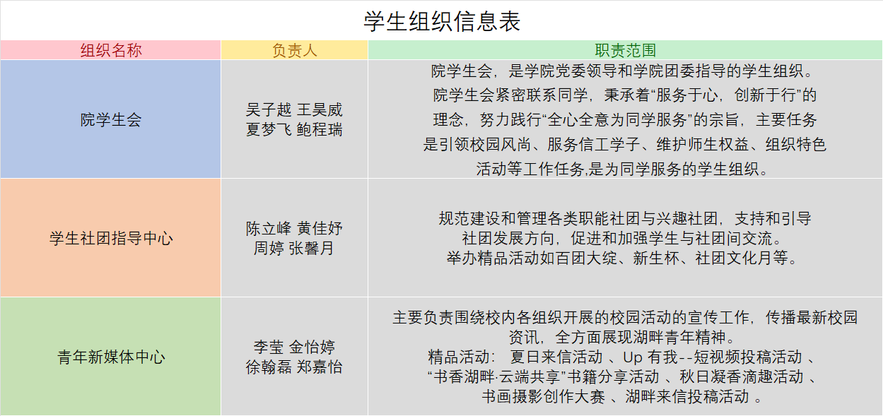 三、分院学生会信息表