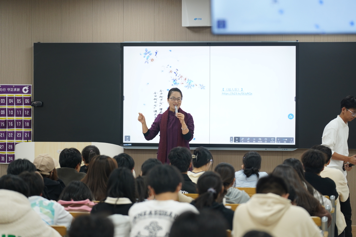 张朝霞教授在讲座中,既展示了自身高专业水平,又广泛引用著名文人的诗句进行示例分析,声情并茂,别开生面,饶有趣味,在深化外语何为、用外语讲好中国故事意义的同时,又提升了本次讲座的内涵。文理学院多位老师出席,全校150余名同学到场聆听,讲座在热烈的掌声中圆满结束。
