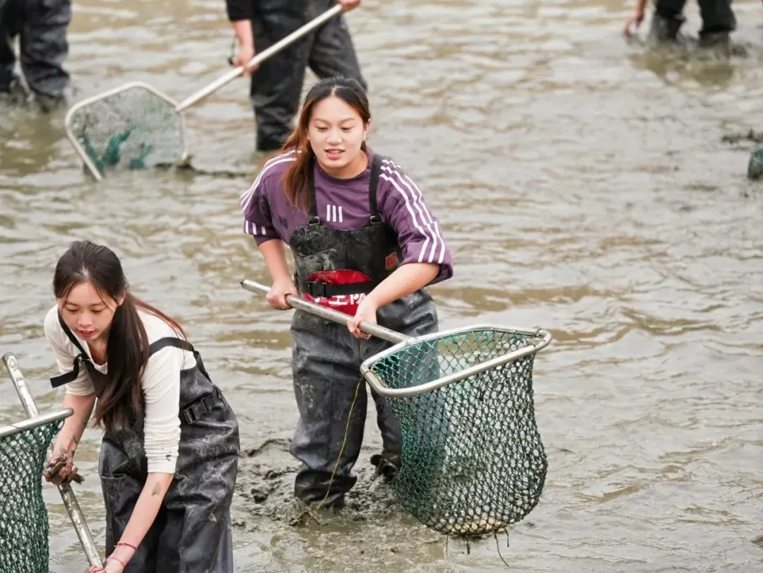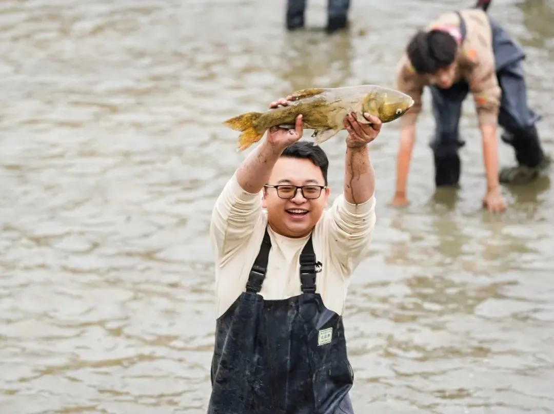 第四届“授渔节”活动正式开幕后,校友们整装待发,挥动渔网,迫不及待地想在波光粼粼的湖面上一展身手。准备捕鱼之余,大家还热情讨论着曾经在校园里的点滴回忆,红围巾映衬着校友情谊,湖边笑声回荡,这一刻,青春与湖水交织,岁月的情怀尽显其中。