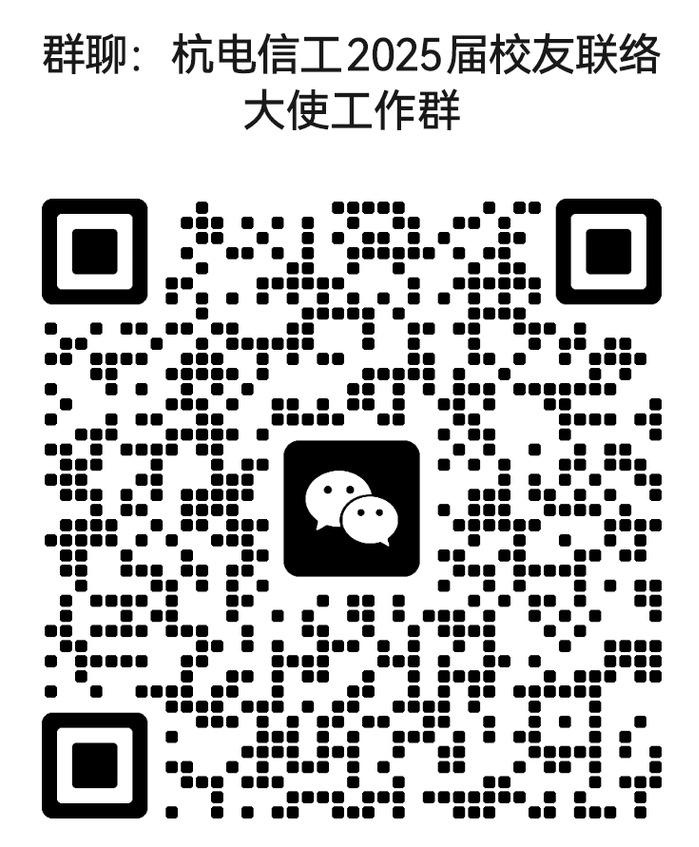 2.校友会成立“2025届校友联络大使工作群”,请各学院通知推荐的所有2025届校友联络大使扫码进微信群(进群后完善署名,格式为“25届+专业班级+姓名”)。